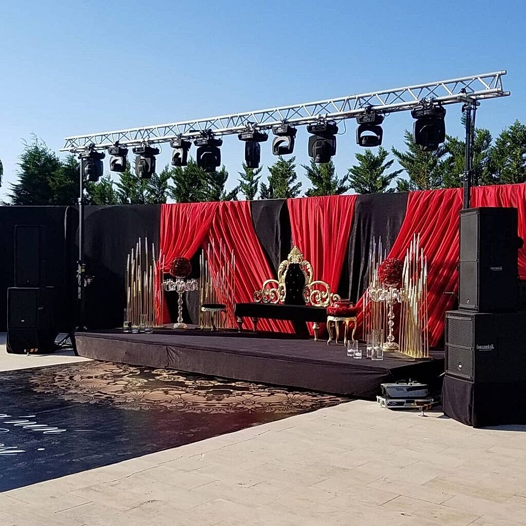 Ses, ışık ve sahne kurulumu, kalabalık organizasyon hazırlıklarında tercih edilen sistemlerden biridir. Bu sistemlerin kalitesinin yüksek olması; gereksinim duyulan ışığın sağlanması, sesin çıkması ve toplamının mükemmel görünmesi açısından oldukça önemlidir. Ayrıca sahne sisteminin organizasyon türüne uygun organize edilmesi, düzenlenen etkinliğinin kusursuz bir şekilde ilerlemesini sağlar. Sahne tasarımları, ışık yazılım planlamaları, kurumsal dekor, truss kurulumu, podyum ve led ekran çalışmalarıyla gerçekleştirilen ses, ışık ve sahne kurulumu; organizasyonun kalitesini oldukça yükseltir.